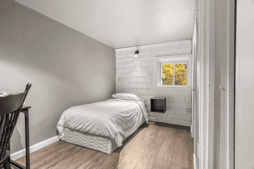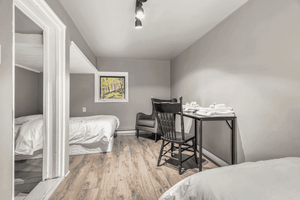 - 1 chambre avec lit Queen et 3 lits simples; total de 5 personnes.